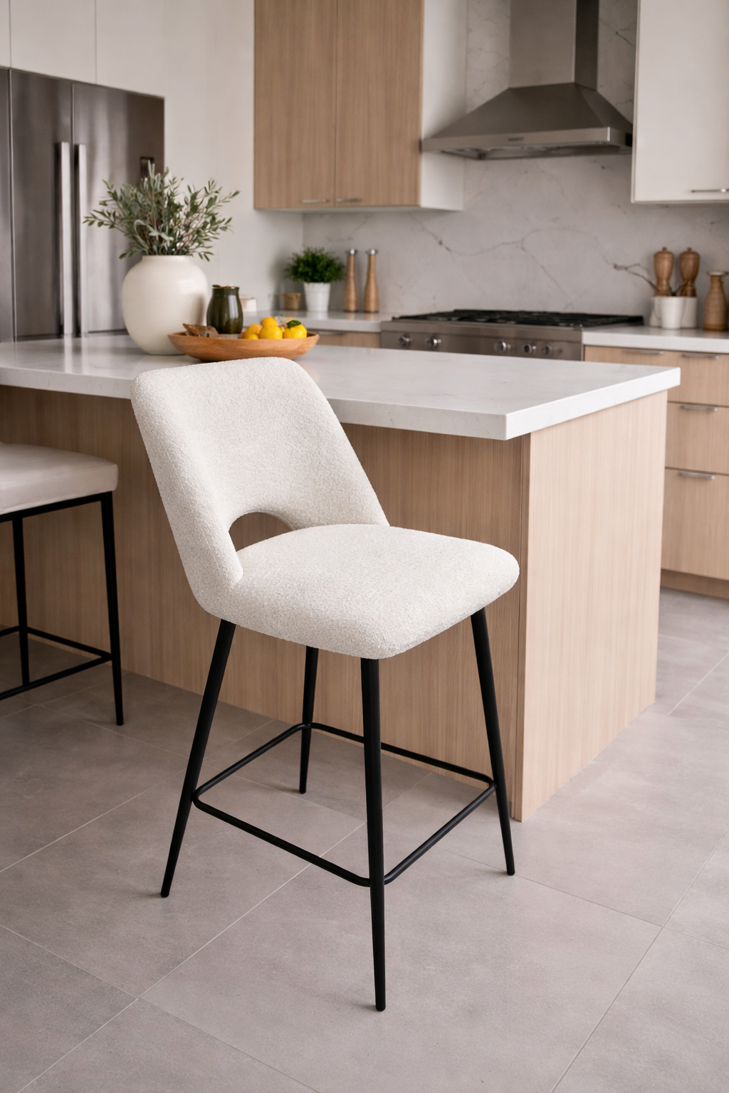 Hoker Tapicerowany Oro to elegancki i nowoczesny hoker wykonany w tkaninę TEDDY . Jest to idealne rozwiązanie dla miłośników wygody i nowoczesnego stylu. Hoker wykonany z wysokiej jakości materiałów .Podstawę hokera stanowi metalowa smukła noga w kolorze czarnym , malowana proszkowo która podkreśla kolor tkaniny. Siedzisko i oparcie hokera pokryte jest wyjatkową tkaniną Boucle. Największym atutem hokera jest miękkie siedzisko. Hoker ORO idealnie pasuje do nowoczesnego wnętrza . Sprawdzi się on w każdym salonie, jadalni , kuchni gdzie doda on wnętrzu ciepła i charakteru.