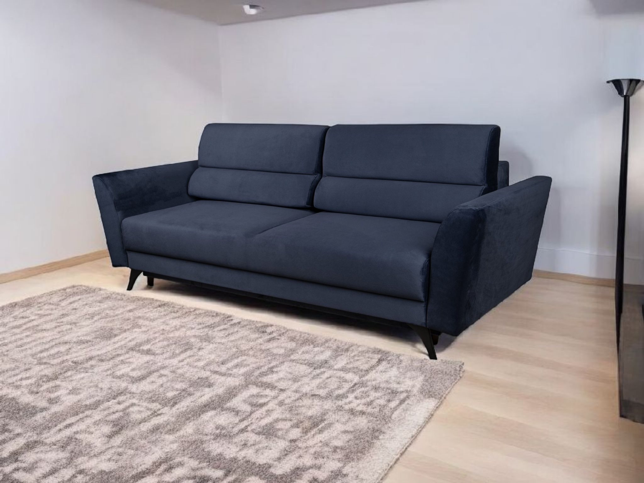 Nowoczesna i funkcjonalna kanapa, która łączy w sobie wygodę, trwałość i elegancki design. Doskonale sprawdzi się zarówno w salonie, jak i w pokoju gościnnym, oferując wygodne miejsce do siedzenia w ciągu dnia oraz komfortową przestrzeń do spania w nocy.