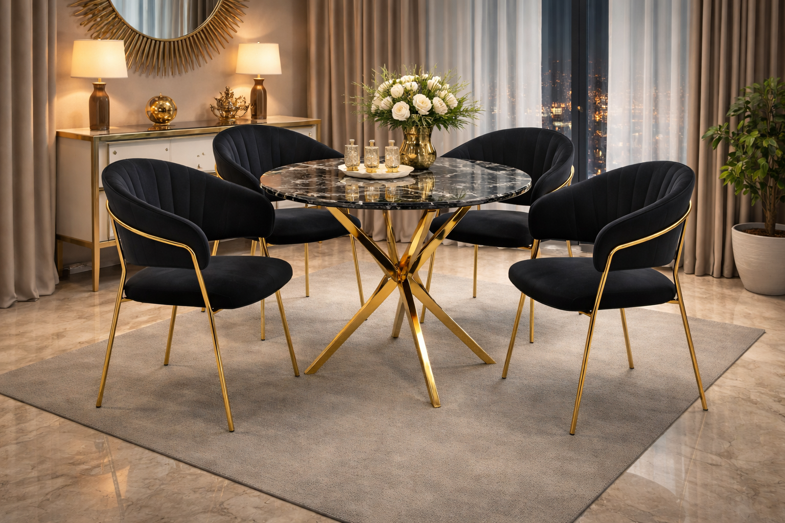 Stelaż wykonany ze złotego chromu nadaje krzesłu nowoczesny i luksusowy wygląd. Dzięki w pełni spawanej konstrukcji krzesło jest stabilne, trwałe oraz odporne na luzowanie i skrzypienie.