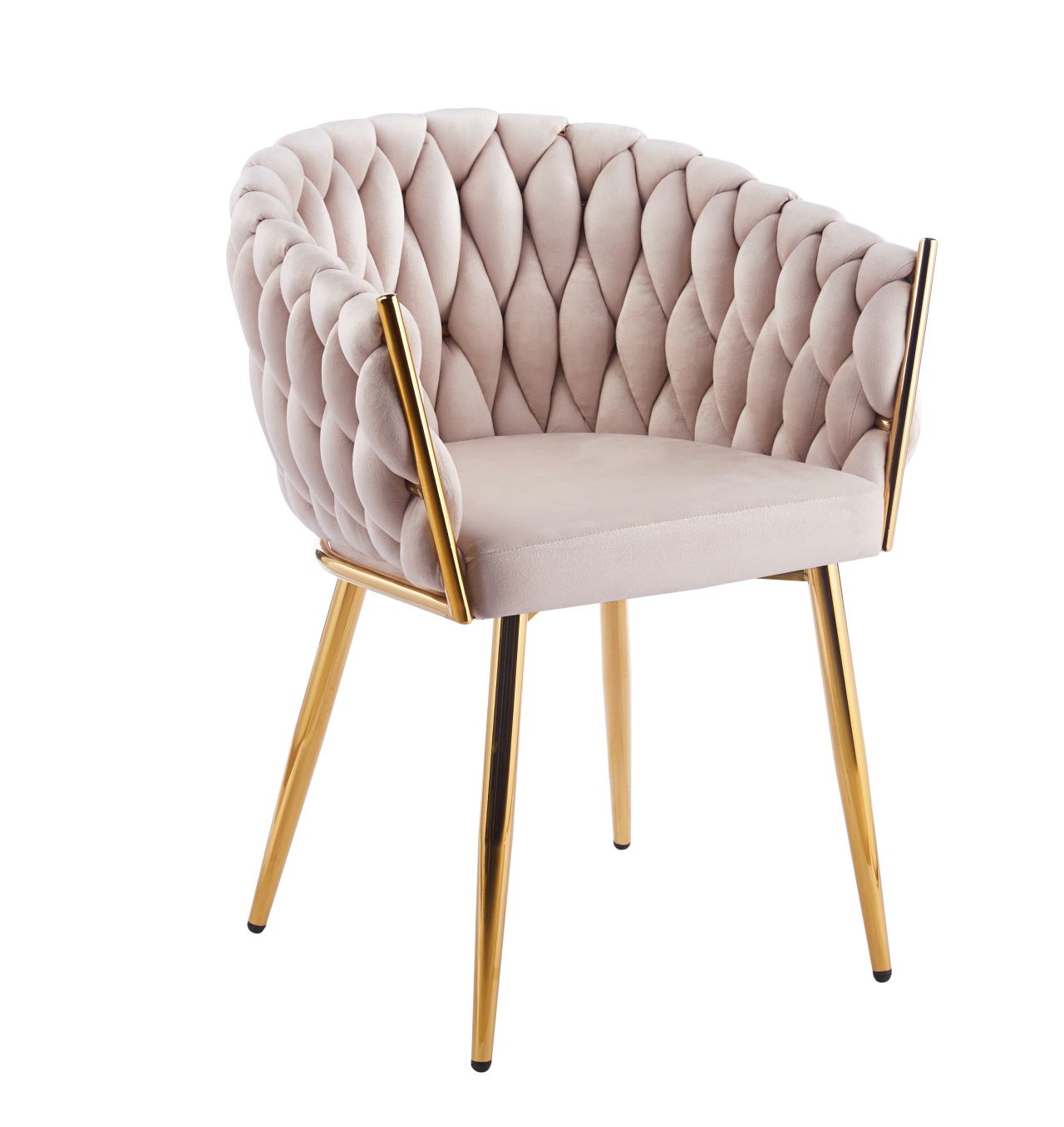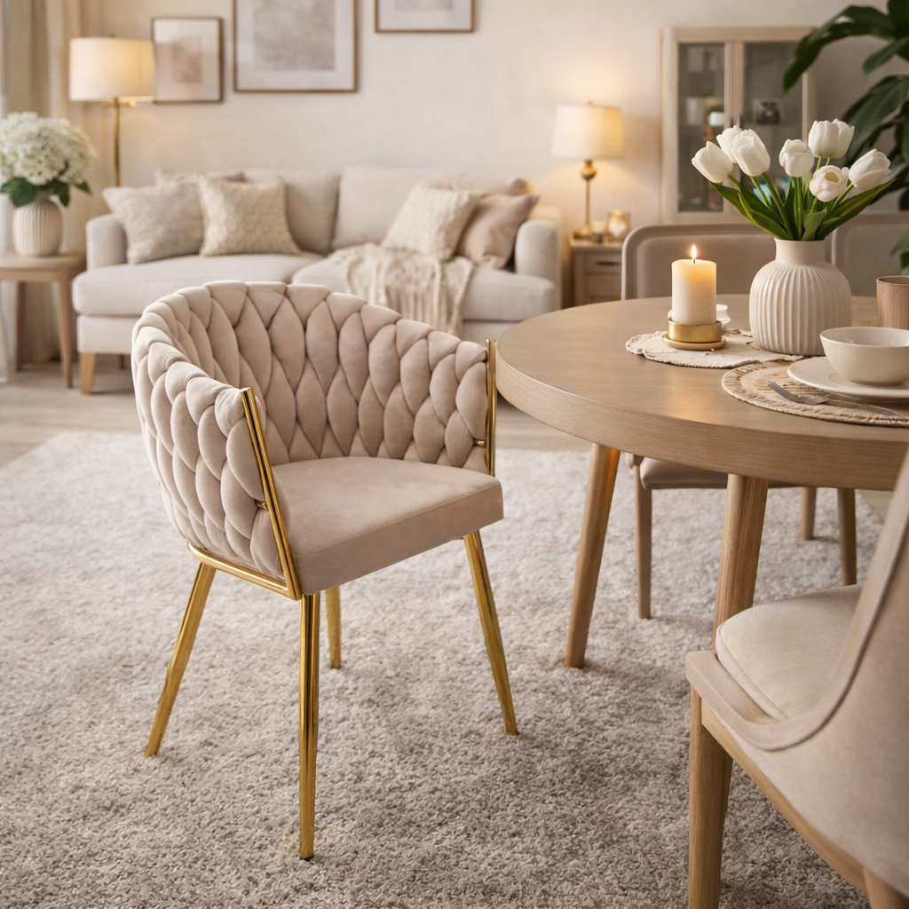 Krzesło tapicerowane ADLELA – beżowo-złote velvet, styl glamour