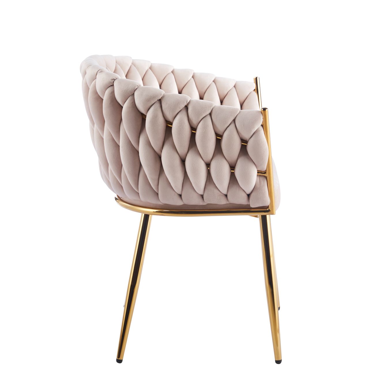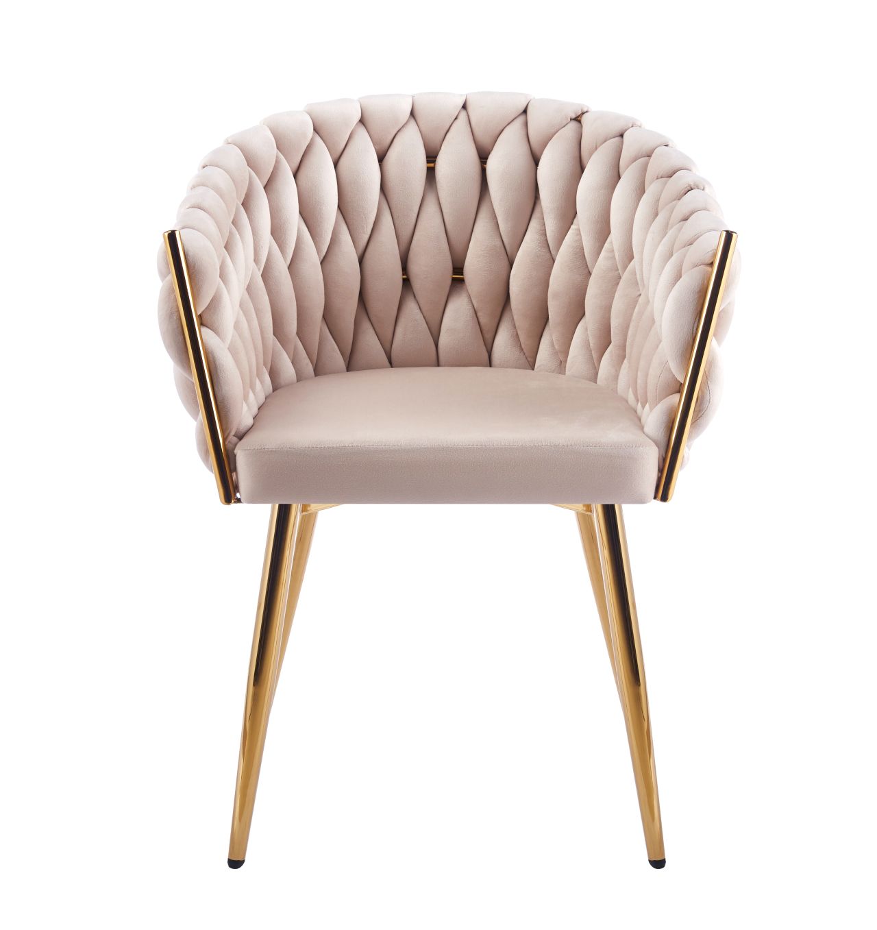 Stabilność krzesła zapewniają złote nogi z chromowanej stali, które podkreślają elegancki charakter mebla. Stylowe pikowanie na oparciu dodaje całości wyjątkowego wyglądu.
