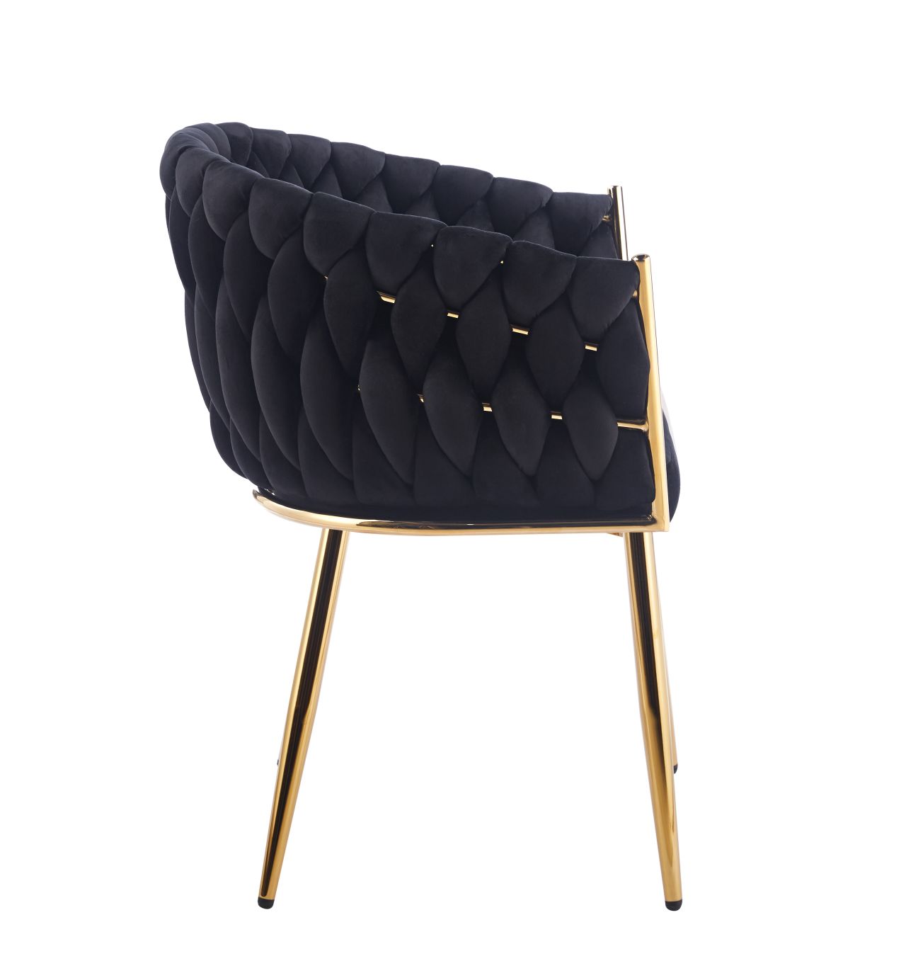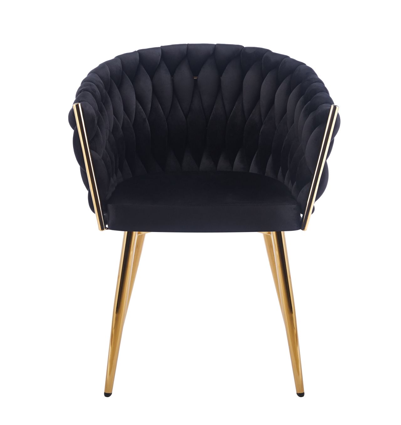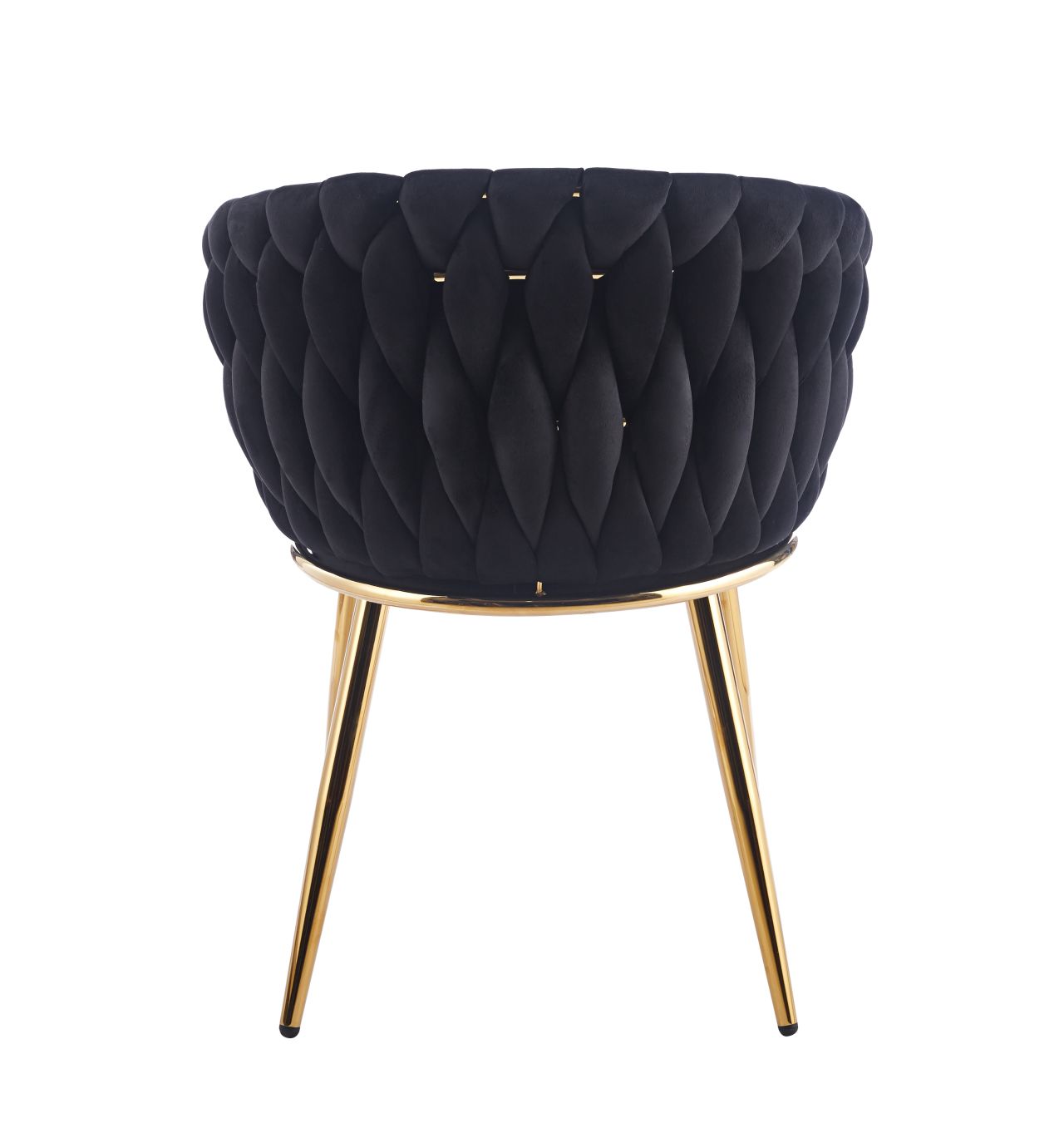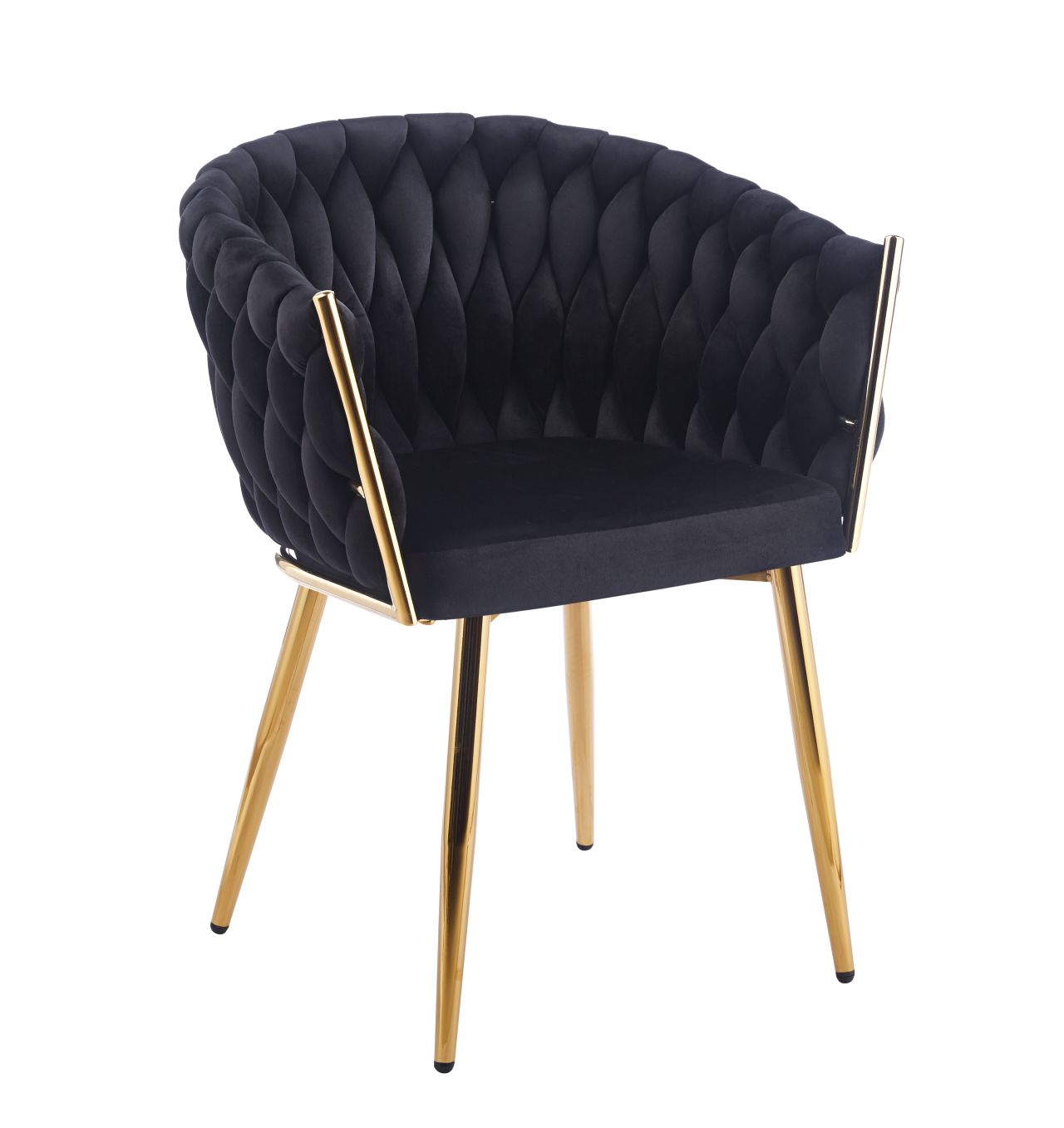 Stabilność krzesła zapewniają złote nogi z chromowanej stali, które podkreślają elegancki charakter mebla. Stylowe pikowanie na oparciu dodaje całości wyjątkowego wyglądu.