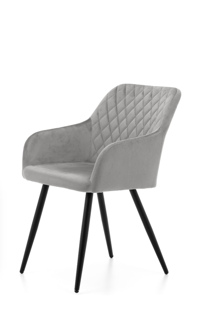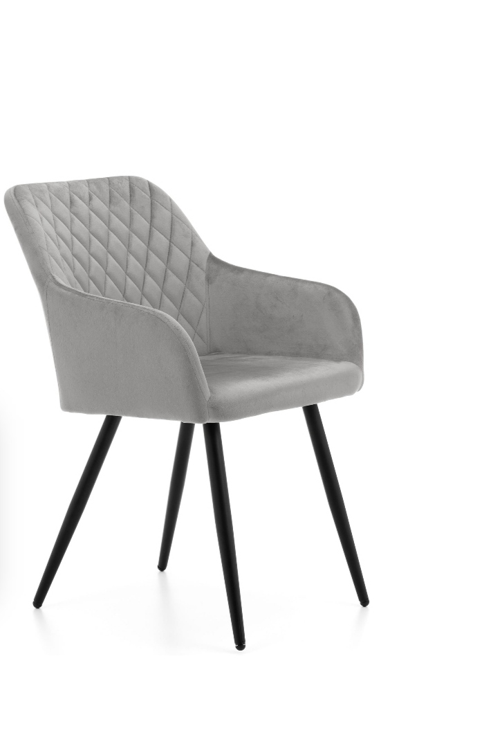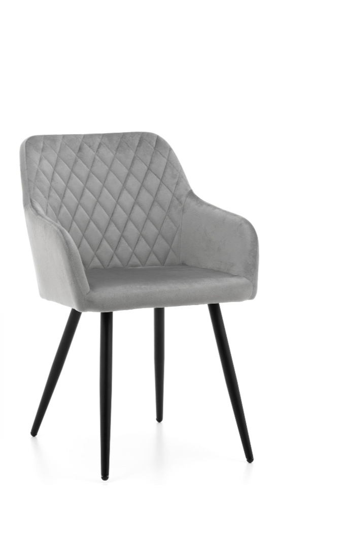 Krzesło Piękne i eleganckie. Krzesło KARO w nowoczesnym stylu wyróżnia się ciekawym wyglądem. Wysoka jakość wykonania sprawia, że krzesło jest wygodne i prezentuje się idealnie w każdym pomieszczeniu . Krzesło wykonane z tkaniny Welwet. Krzesło posiada nogi metalowe , malowane proszkowo w kolorze czarnym.