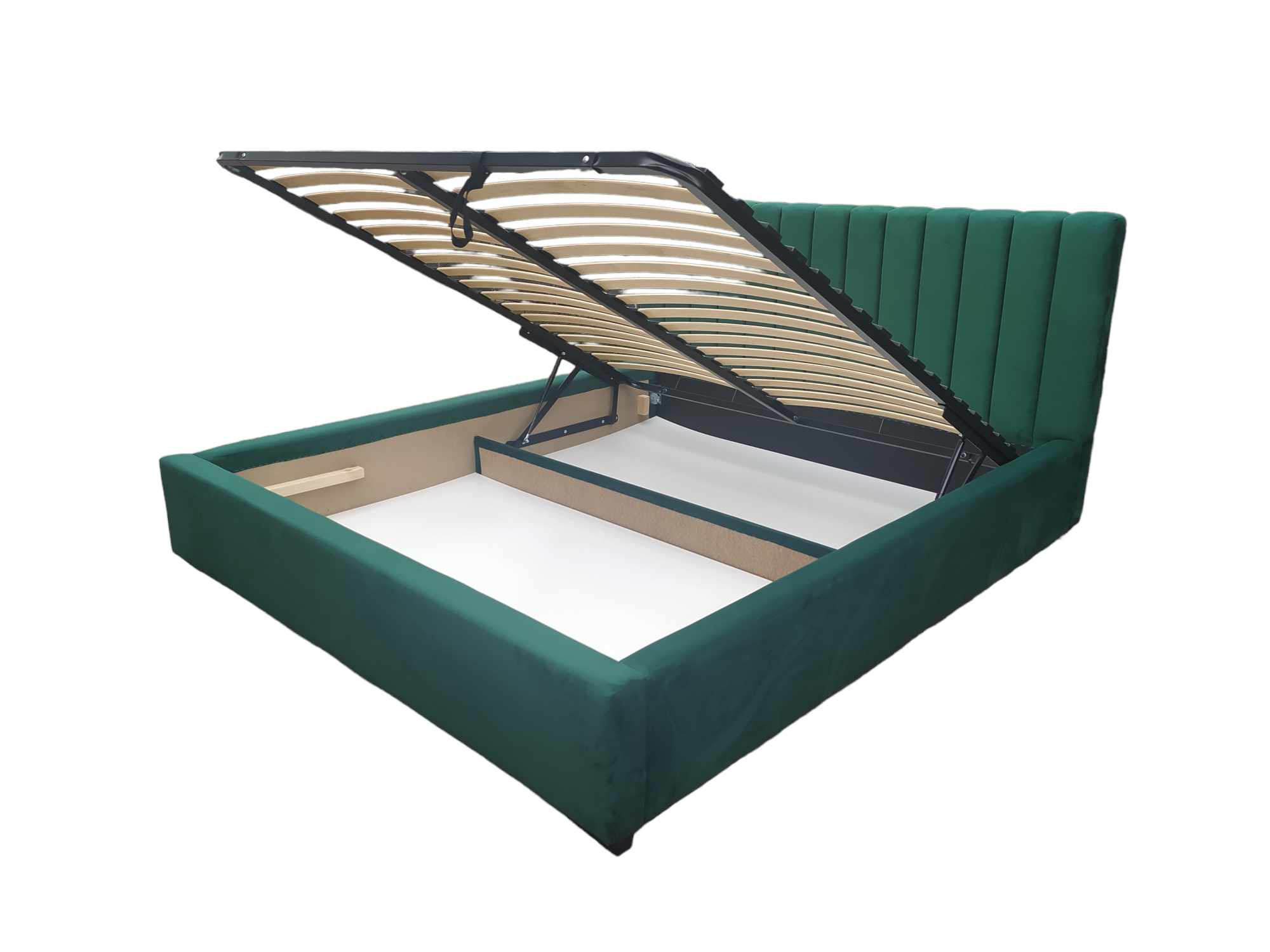 Łóżka z stelażem metalowym na siłownikach gazowych z listwami giętymi.