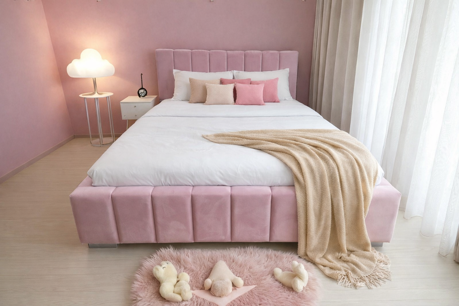 Łóżko sypialniane MONZA II wykonane z eleganckiej tkaniny Royal Velvet w kolorze ciemny popiel to połączenie nowoczesnego stylu i funkcjonalności. Pionowe panele na zagłówku i przodzie łóżka nadają mu wyjątkowy charakter, a gładkie boki podkreślają minimalistyczną formę. Model wyposażony jest w pojemnik na pościel oraz metalowy stelaż na siłownikach gazowych z giętymi listwami. Możliwość wykonania w dowolnym wymiarze i kolorystyce oraz dobrania materaca wysokiej jakości.