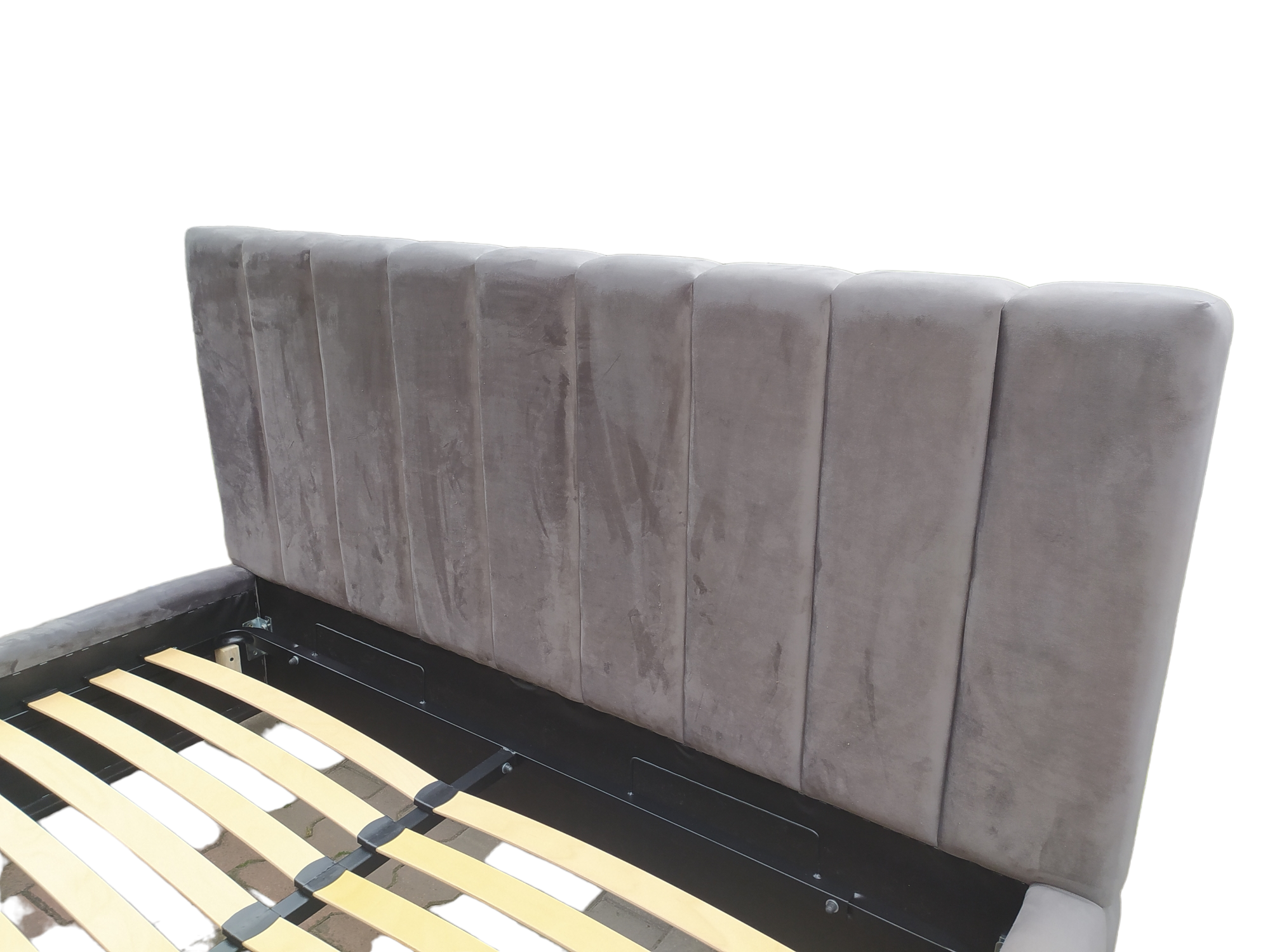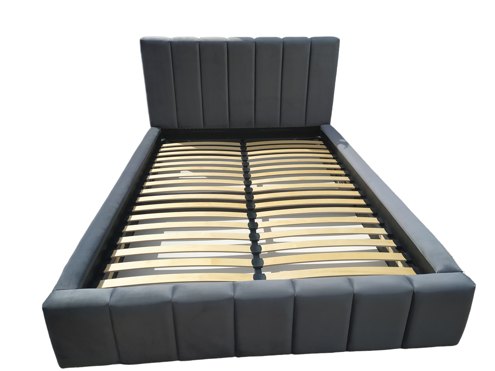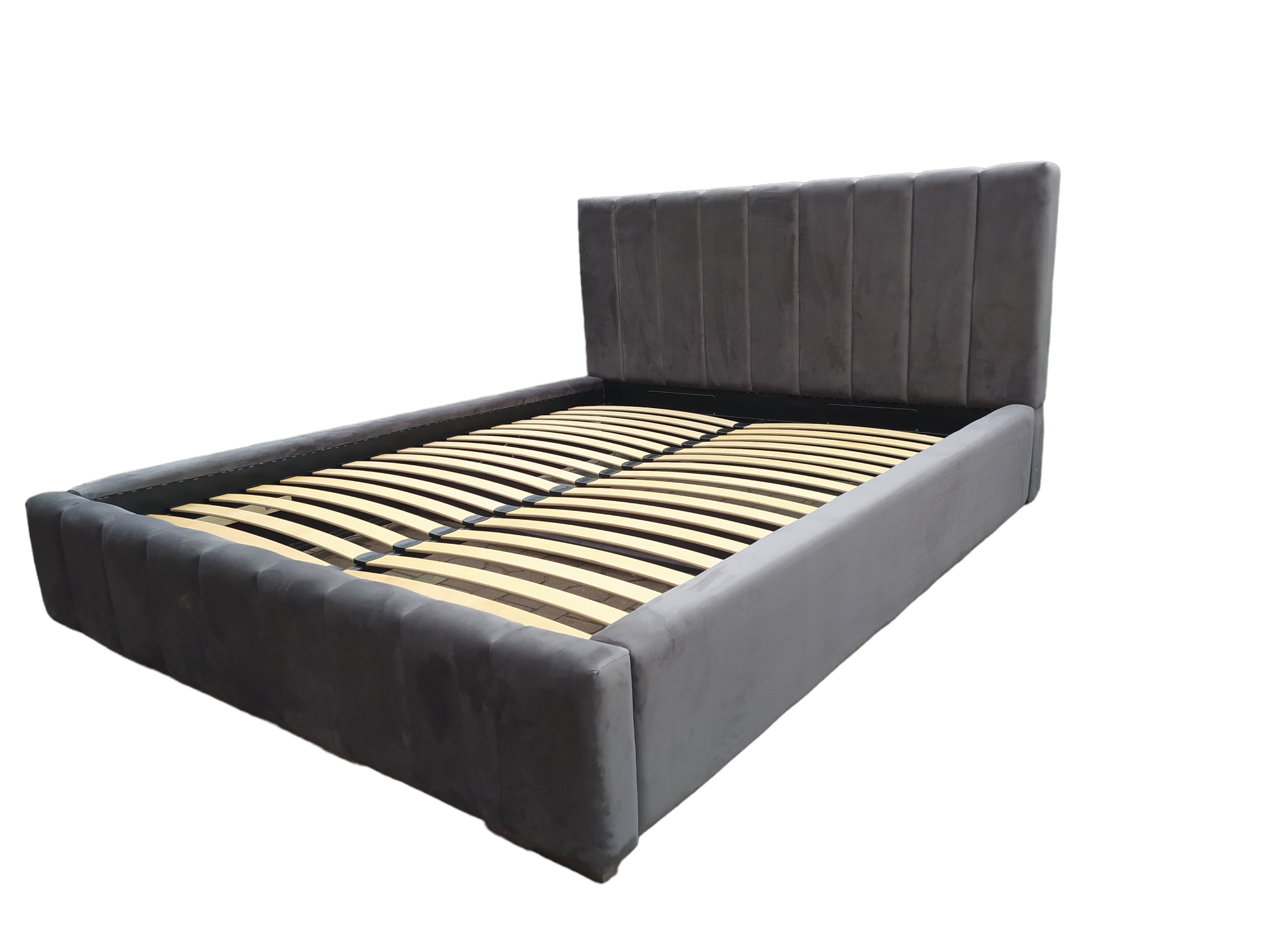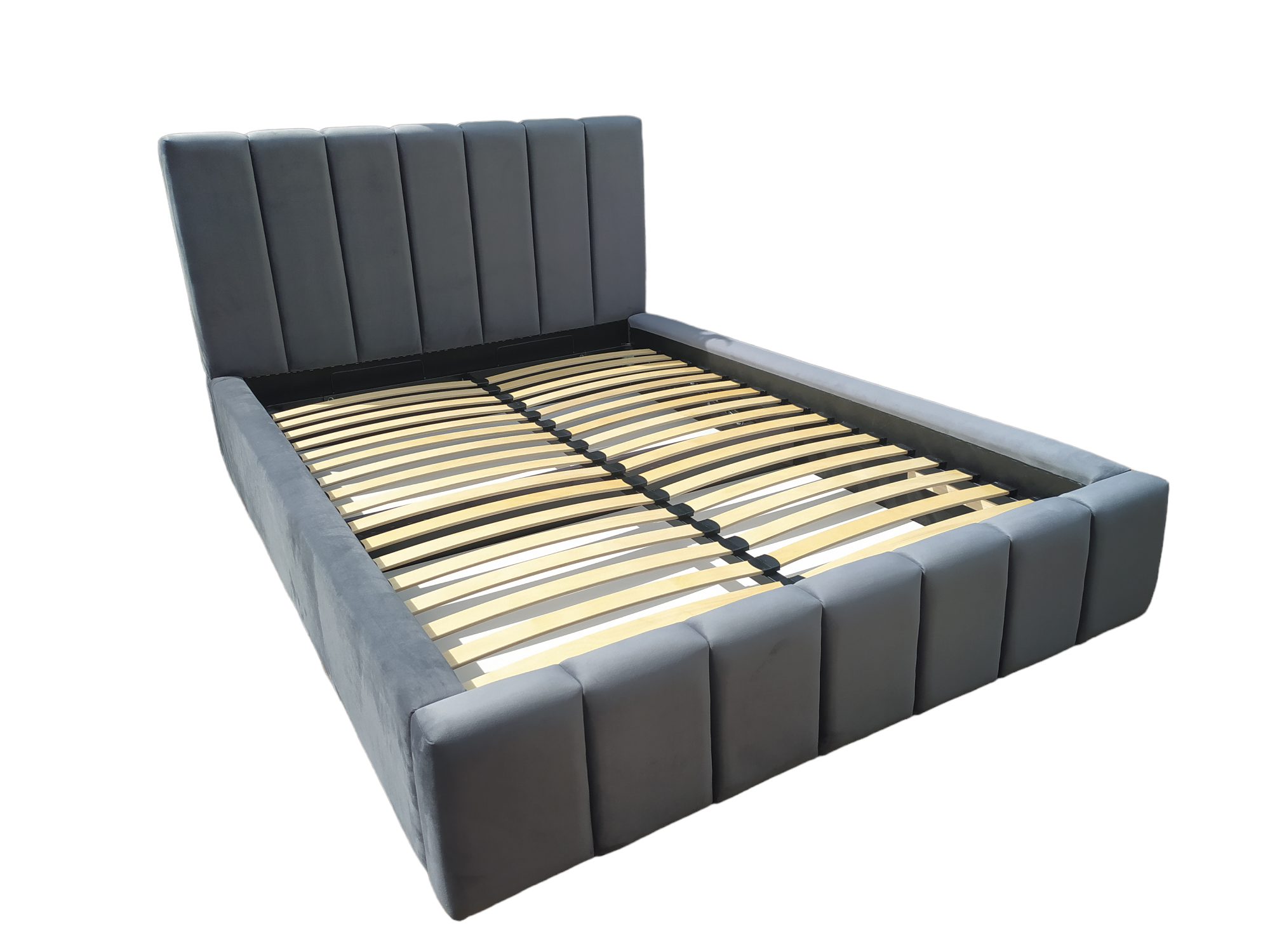 Łóżko sypialniane MONZA II wykonane z eleganckiej tkaniny Royal Velvet w dowolnym kolorze to połączenie nowoczesnego stylu i funkcjonalności. Pionowe panele na zagłówku i przodzie łóżka nadają mu wyjątkowy charakter, a gładkie boki podkreślają minimalistyczną formę. Model wyposażony jest w pojemnik na pościel oraz metalowy stelaż na siłownikach gazowych z giętymi listwami. Możliwość wykonania w dowolnym wymiarze i kolorystyce oraz dobrania materaca wysokiej jakości.