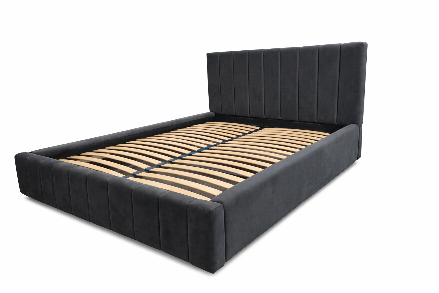 Model oferuje praktyczny pojemnik na pościel oraz solidny metalowy stelaż na siłownikach gazowych z giętymi listwami, który zapewnia komfort snu i umożliwia łatwe, bezpieczne podnoszenie materaca. Stabilna konstrukcja gwarantuje wygodę codziennego użytkowania i długą żywotność mebla.