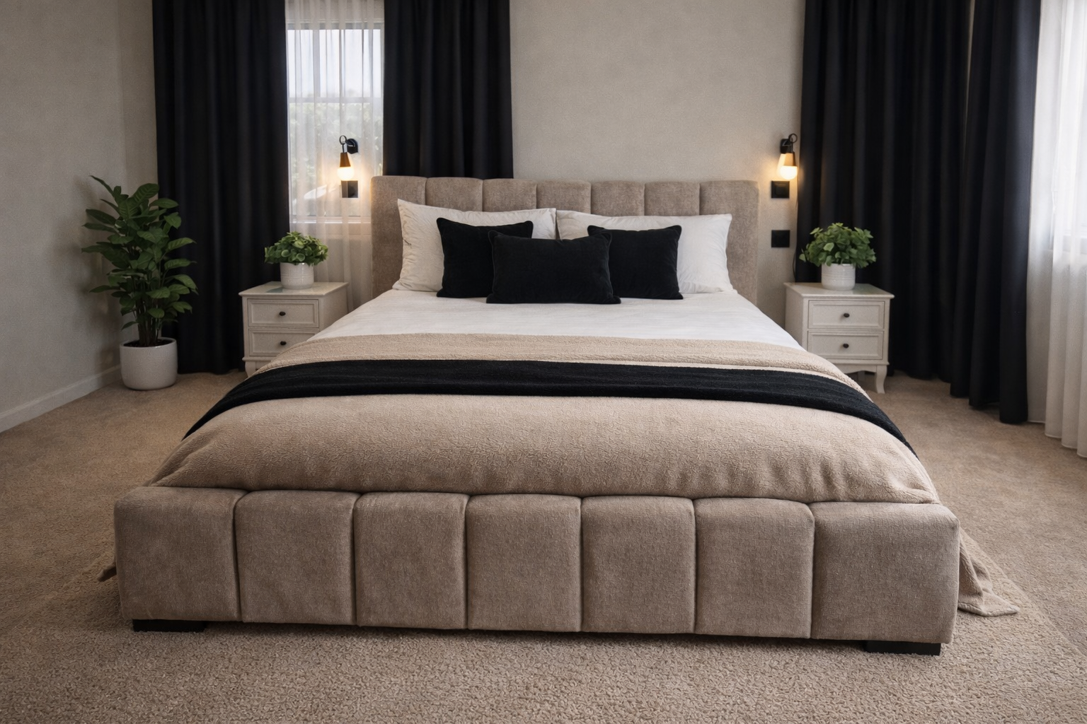 Łóżko Monza IV to nowoczesne i wygodne łóżko tapicerowane klasy premium, idealne do sypialni małżeńskiej, apartamentu lub nowoczesnego wnętrza. Model w rozmiarze 160×200 cm zapewnia wysoki komfort snu oraz praktyczne rozwiązania do codziennego użytkowania. Produkt pochodzi od polskiego producenta, co gwarantuje solidne wykonanie i trwałość.