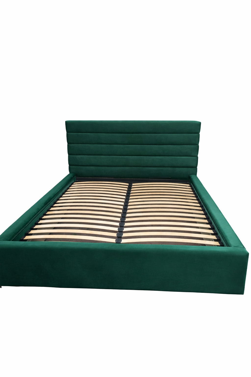 Łóżko TEO to nowoczesny model z charakterystycznym zagłówkiem z poziomych paneli, tapicerowany elegancką tkaniną Royal Velvet. Wyposażone w metalowy stelaż na siłownikach gazowych oraz pojemnik na pościel, zapewnia wygodę użytkowania i dodatkową przestrzeń do przechowywania. Łóżko wykonujemy na zamówienie — w dowolnym rozmiarze i kolorze, z możliwością obniżenia zagłówka.