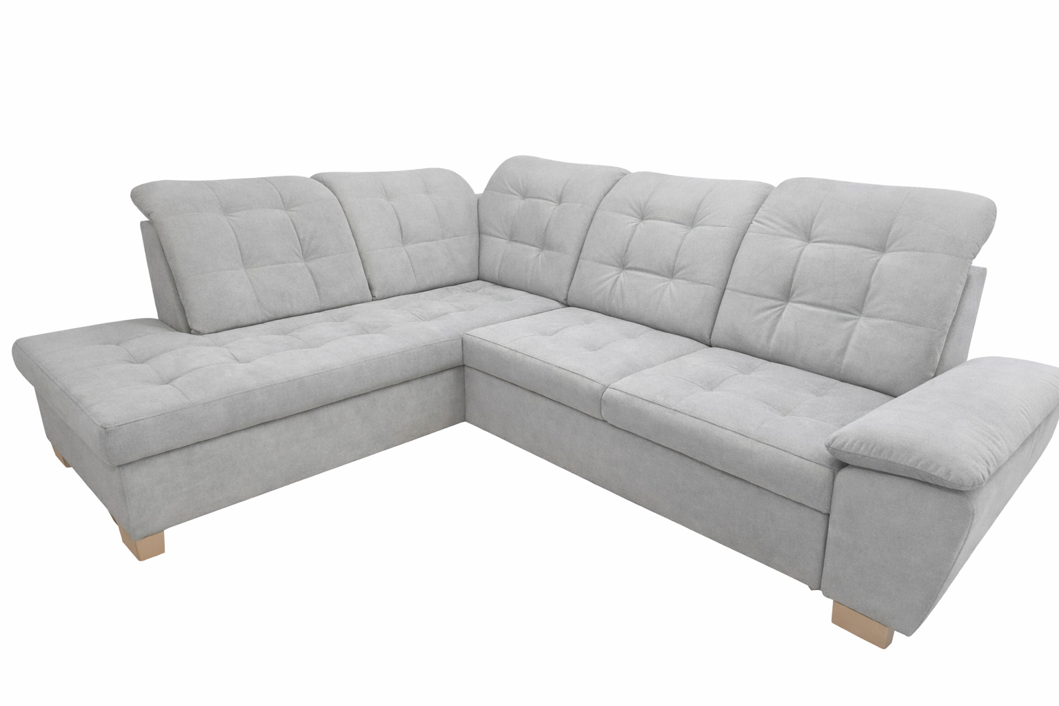 Narożnik Apollo posiada regulowane zagłówki, które pozwalają dopasować oparcie do indywidualnych preferencji użytkownika. Siedzisko wykonano z wysokiej jakości pianek w połączeniu ze sprężynami falistymi, co zapewnia odpowiednią elastyczność, trwałość oraz wygodę zarówno podczas siedzenia, jak i snu.