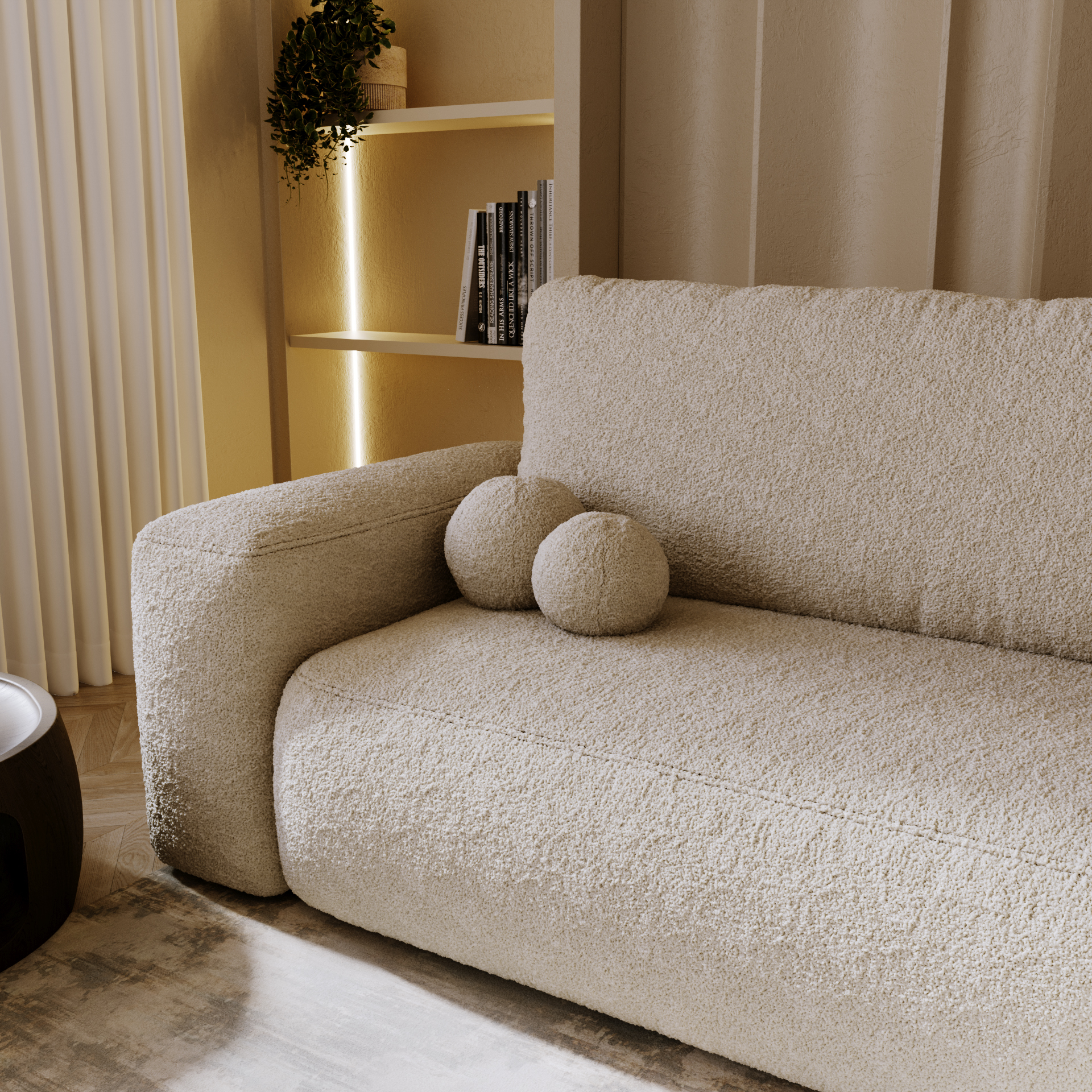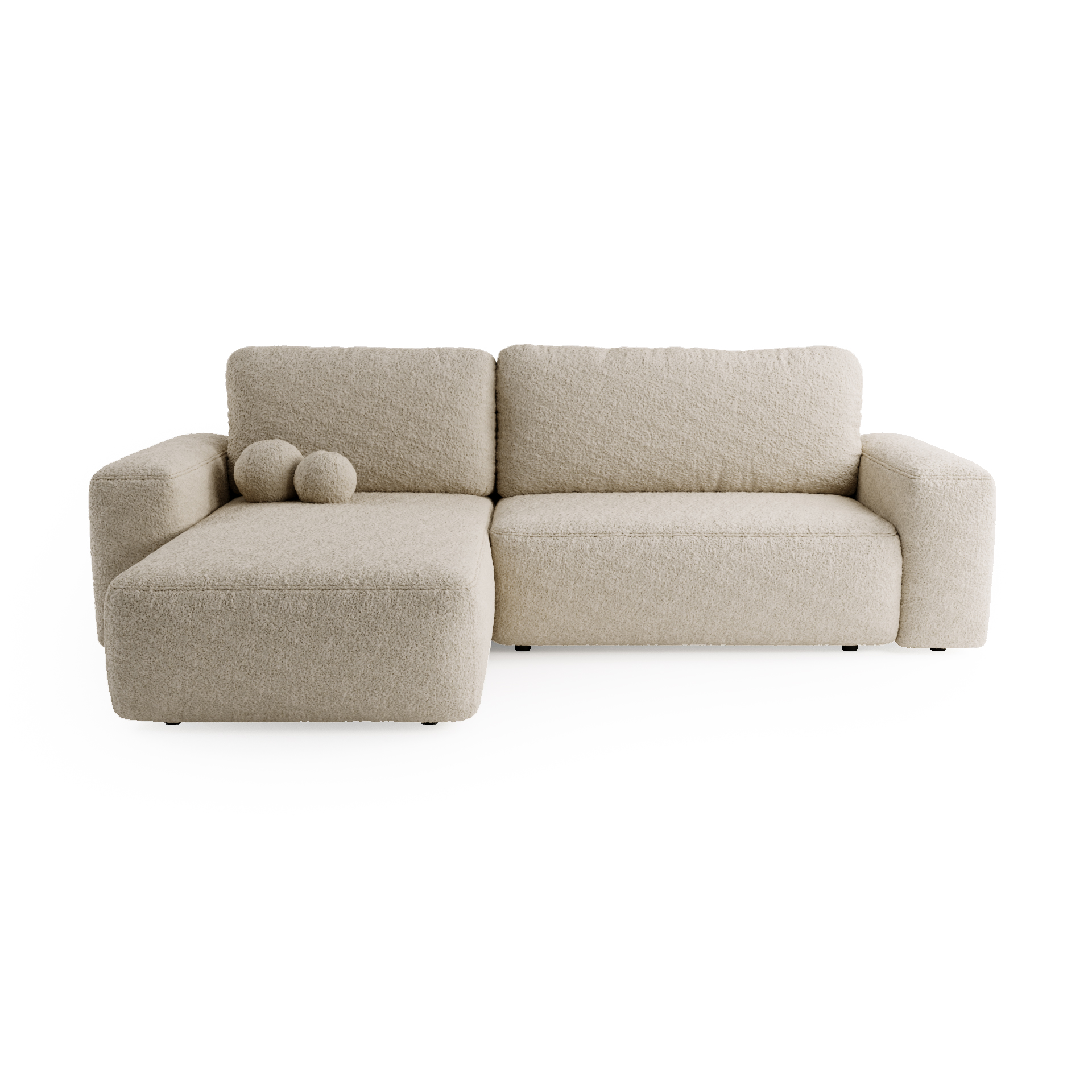 FILO to narożnik z funkcją spania i pojemnikiem na pościel, rozkładany za pomocą wygodnego systemu automatycznego. Tył mebla obity tkaniną pozwala ustawić go w dowolnym miejscu w salonie. W zestawie znajdują się dwie poduszki w kształcie piłek, dodające oryginalnego charakteru.