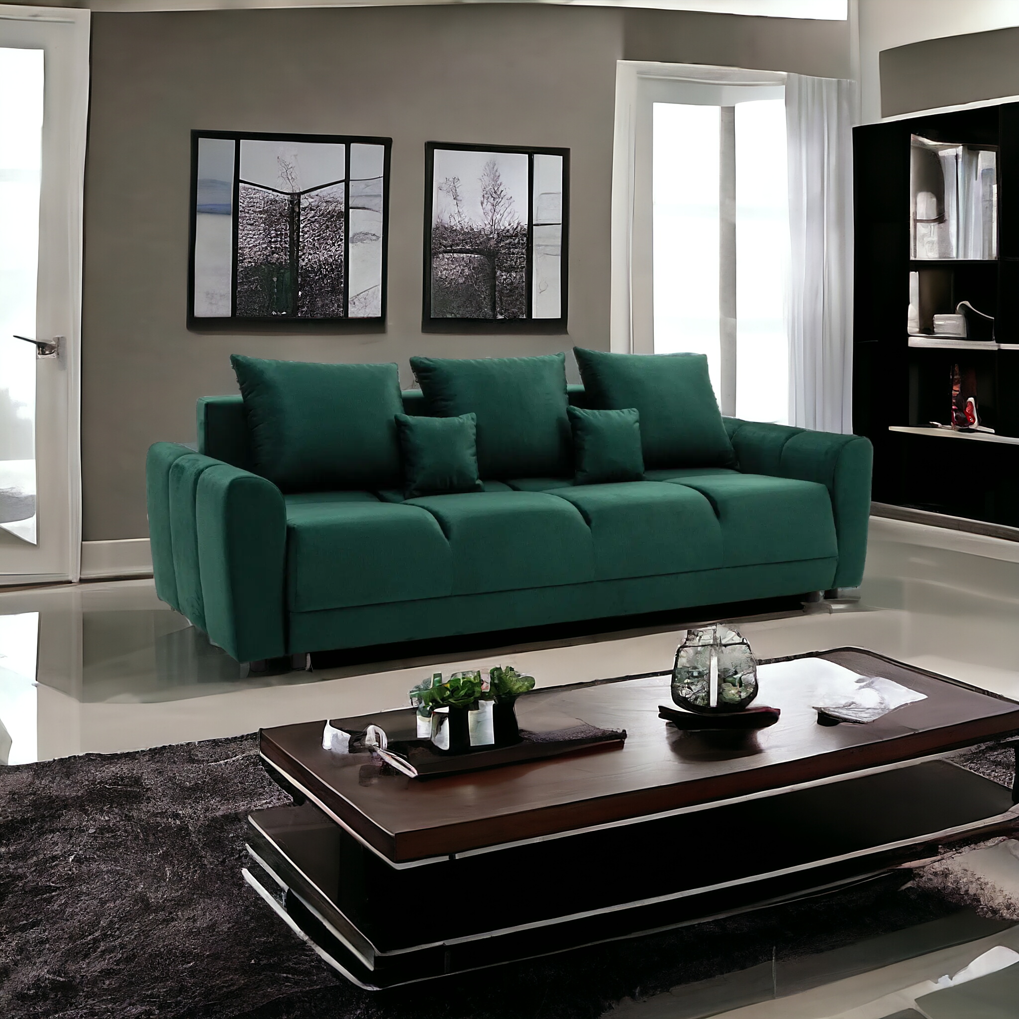 Jest to Luksusowa kanapa wykonana z wysokiej jakości materiałów oraz w wyjątkowym kształcie. Kanapa Sydney został stworzony z myślą o nawet najbardziej wymagających klientach. Główną cechą kanapy jest funkcją spania oraz pojemnik na pościel . Funkcja spania jest bardzo przydatna w przypadku niespodziewanej wizyty gości .Kanapa wykonana z tkaniny Monolit.