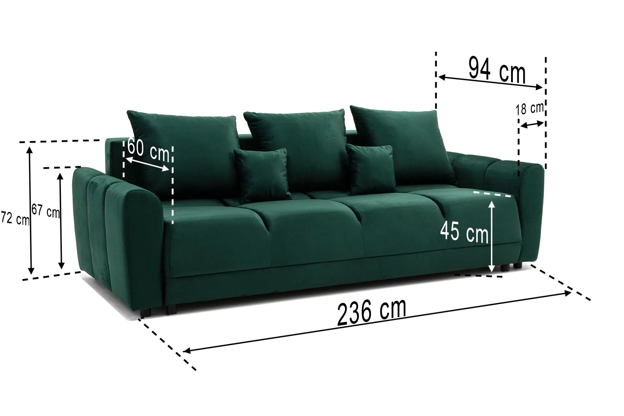 szer 236cm x głęb. 94cm x wys. 72 cm