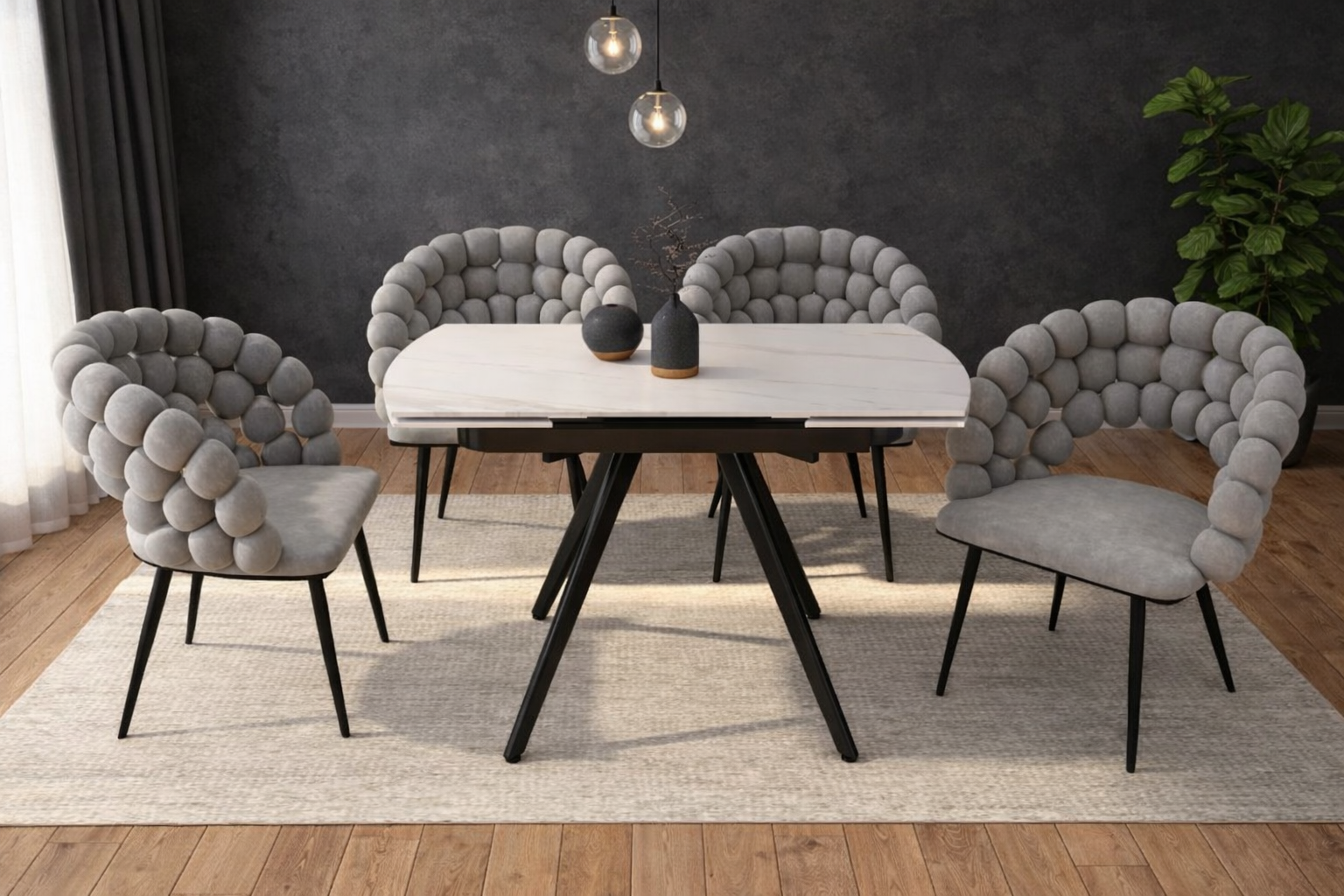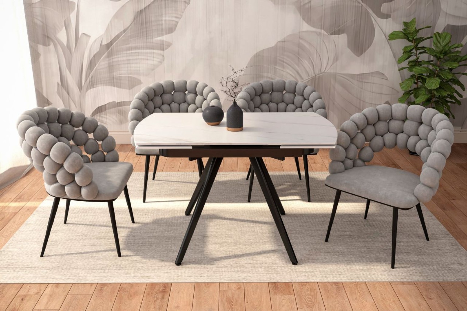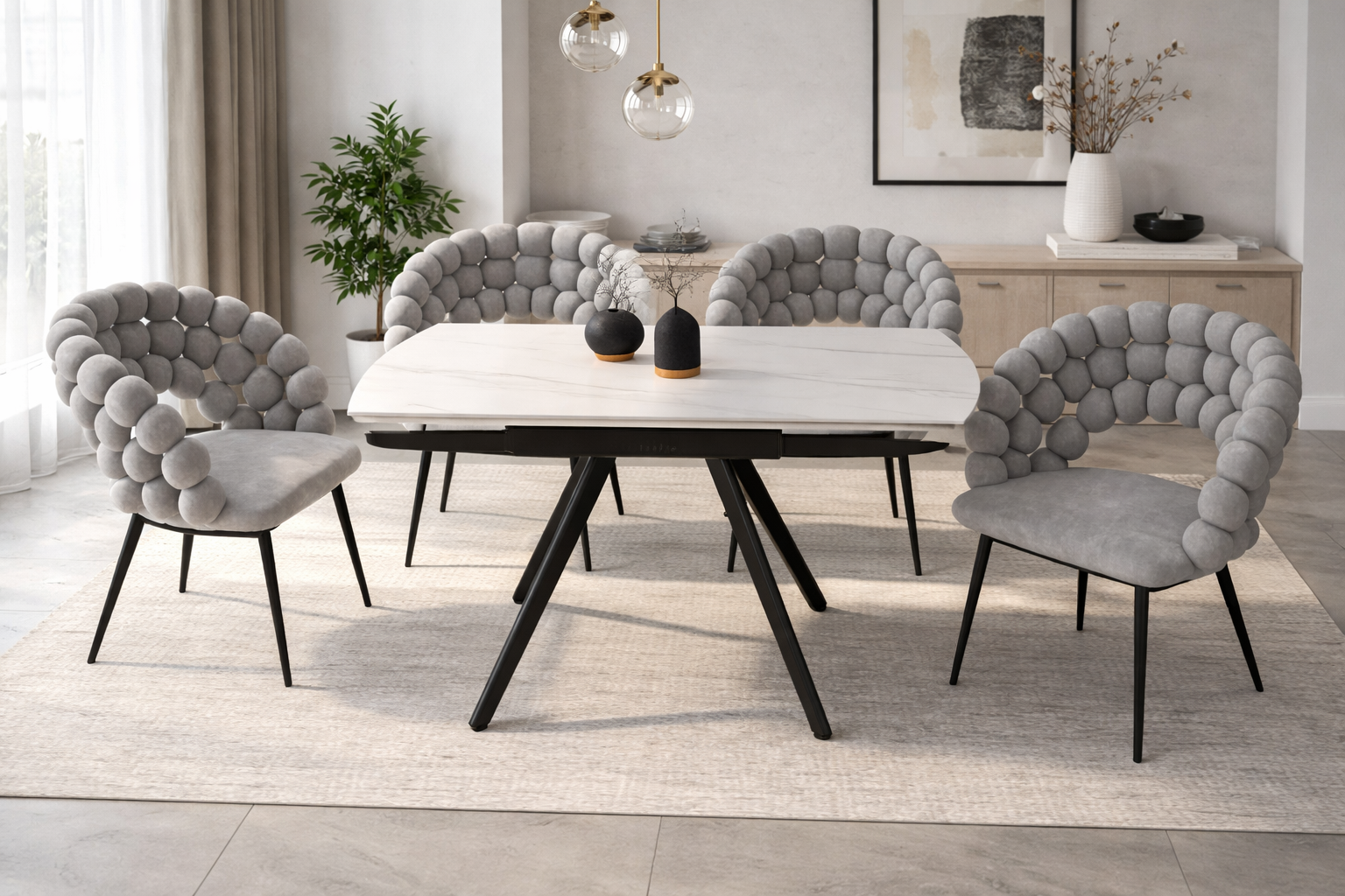 Stół rozkładany ATOS ST31-FX łączy nowoczesny design z funkcjonalnością. Blat z efektem białego marmuru wprowadza elegancję do jadalni, salonu lub kuchni i świetnie pasuje do nowoczesnych oraz klasycznych wnętrz.