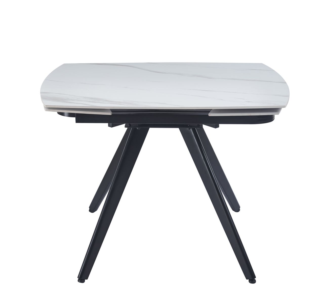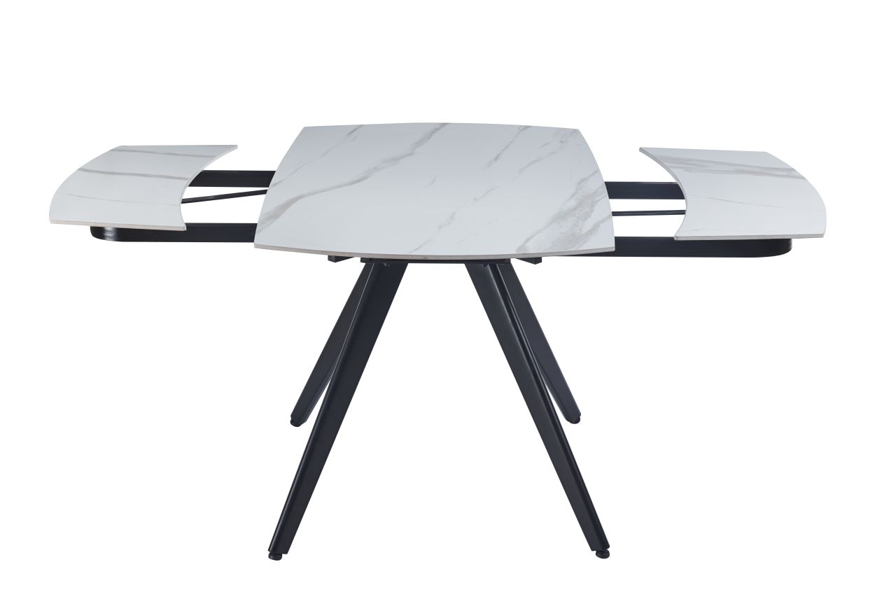 Nowoczesny stół rozkładany z eleganckim blatem w efekcie białego marmuru. Ceramiczna powierzchnia zapewnia trwałość i łatwe czyszczenie, a metalowe nogi malowane proszkowo gwarantują stabilność. Funkcja rozkładania pozwala powiększyć blat z 120 cm do 180 cm, dzięki czemu stół świetnie sprawdzi się zarówno na co dzień, jak i podczas spotkań z rodziną lub przyjaciółmi.