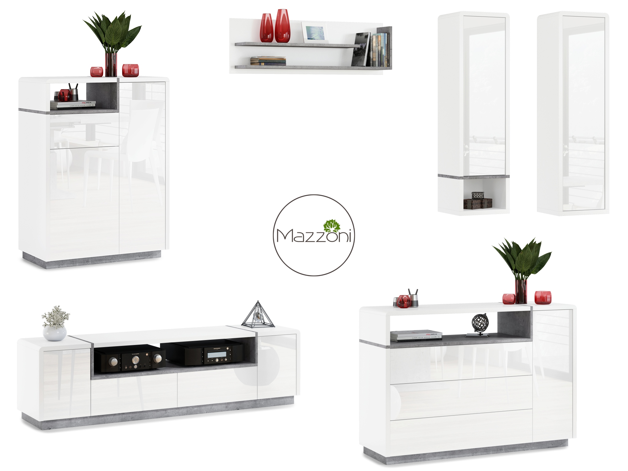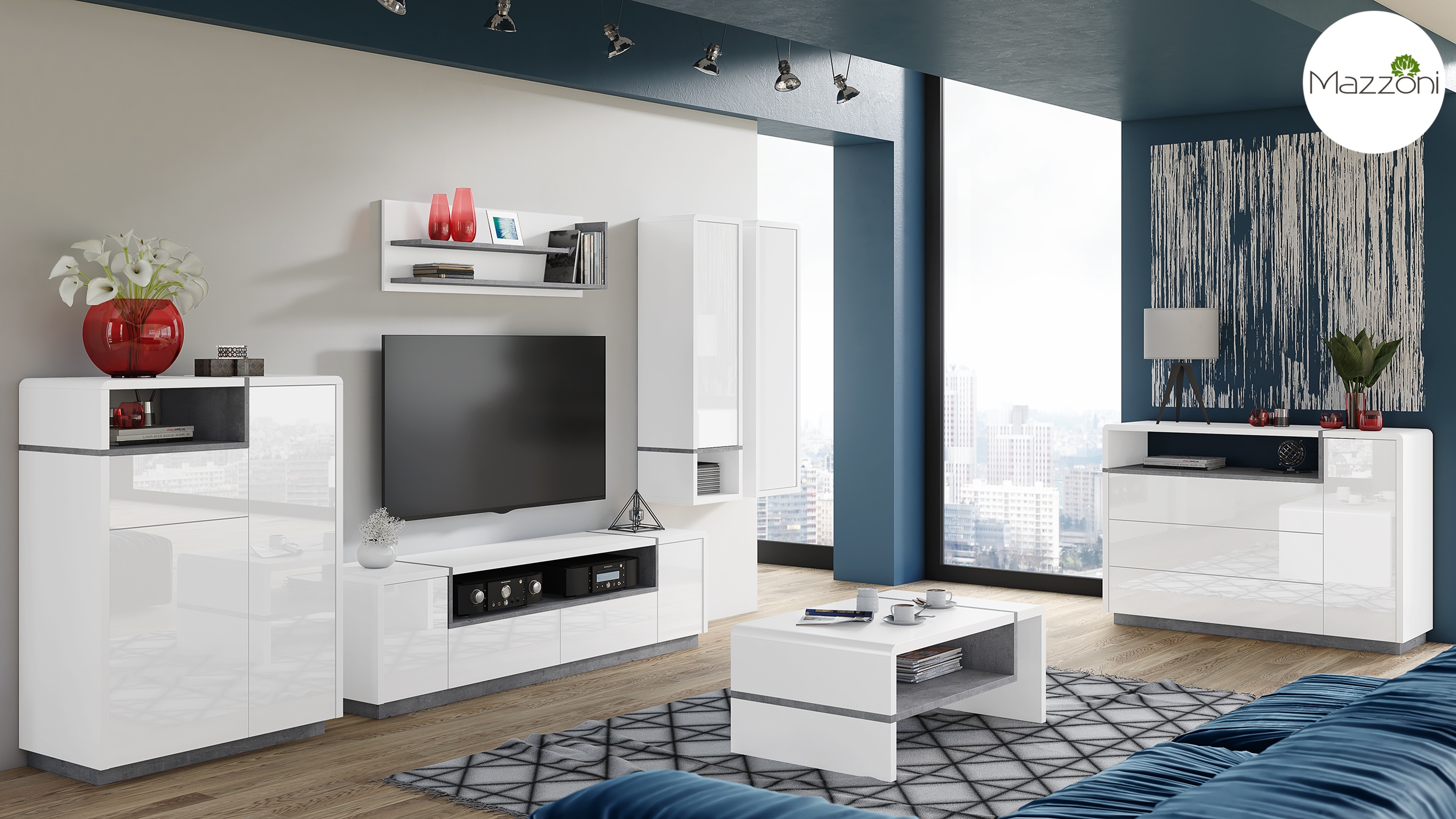 Szafka FOLK RTV-185 Biały Połysk/Mat + Beton Millenium
