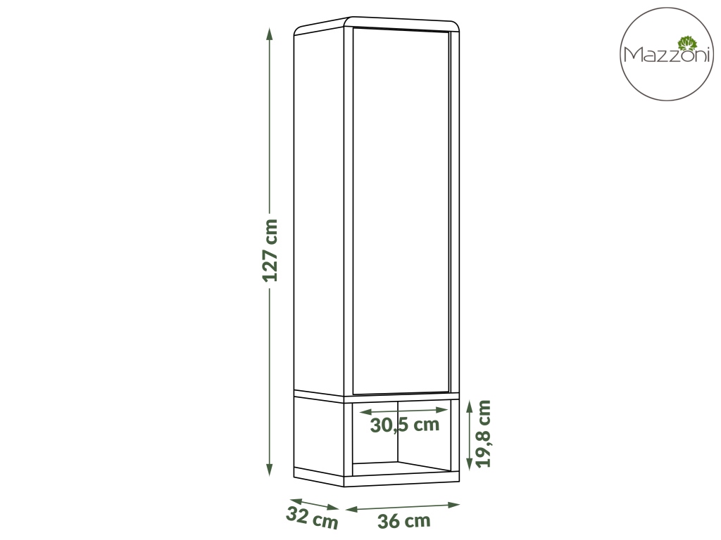 Wymiary: Szerokość 36 cm, Głębokość 32 cm, Wysokość 127 cm