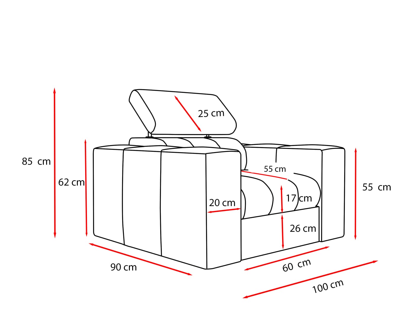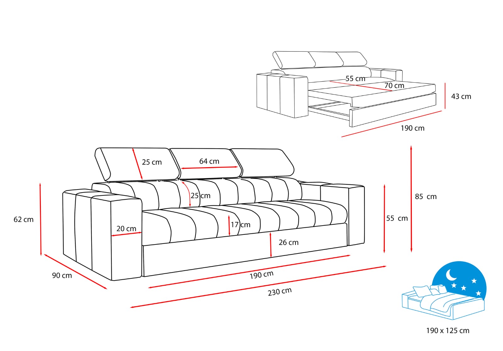 wysokość mebla ( z złożonymi zagłówkami) 85 cm